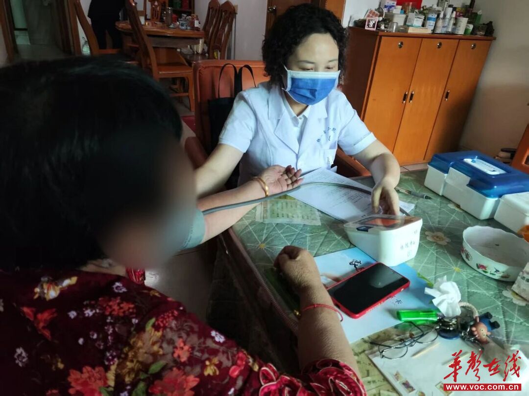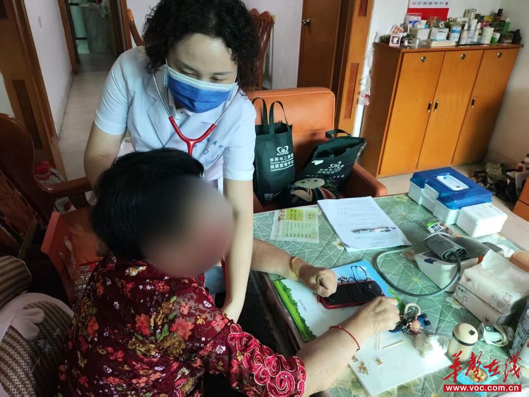 这天,荣彩红医生如约上门,带着血压计、血糖仪、听诊器,还有一份为蒋奶奶量身定制的健康管理计划。她一边为老人测血糖、量血压,一边耐心讲解日常饮食、用药注意事项,还手把手教她如何识别身体发出的“危险信号”。