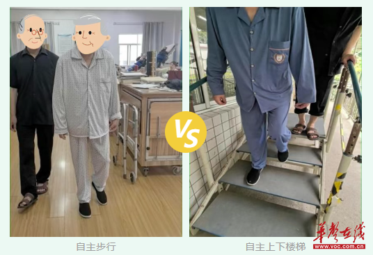康复是与时间的赛跑,更是信念的坚守。尽管张大叔的四肢仍然处于肌肉萎缩、肌张力增高、坐立不能等诸多困难状态,但他和家属积极配合,结合康复医学科团队一直持续不断优化的治疗方案,短短五个月不到的时间,他能缓慢地短距离行走了,甚至可以逐步上下楼梯。