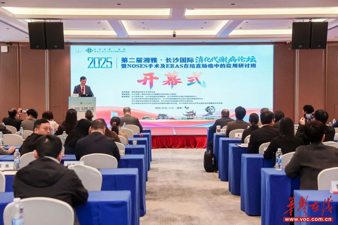 华声在线11月2日讯(通讯员 雷春沙 于彬)10月31日至11月2日,第二届“湘雅·长沙国际消化代谢病论坛”暨NOSES(经自然腔道取标本)手术及ERAS(快速康复)在结直肠癌中的应用研讨班在长沙举行。来自国内外的知名专家们,围绕消化代谢病领域的胃肠及肝胆肿瘤手术创新、加速康复、学科交叉融合、全程管理等内容展开学术交流和创新讨论,并通过机器人辅助直肠癌手术直播、远程机器人操作培训,让与会者零距离观摩精准解剖和智能科技在外科领域的融合。