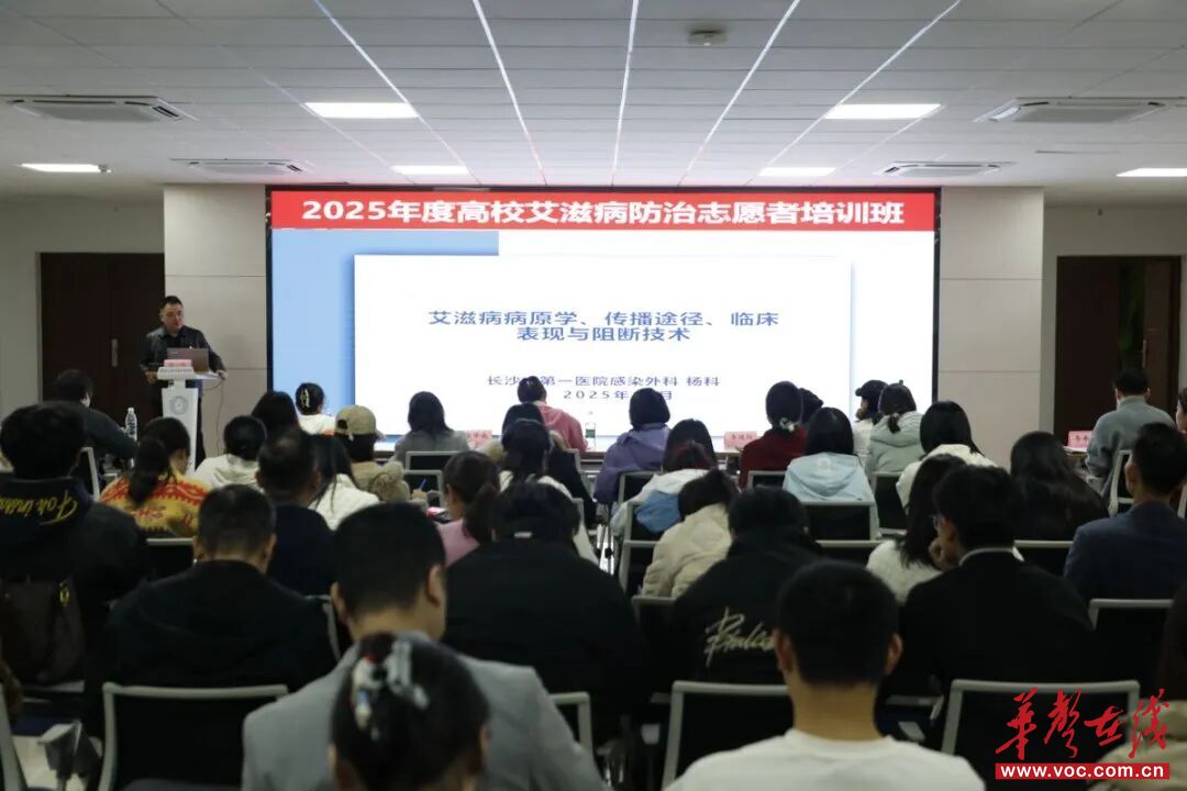 11月8日,由湖南省卫生健康委、湖南省教育厅、共青团湖南省委联合主办,长沙市第一医院(中南大学湘雅医学院附属长沙医院)、中南大学湘雅护理学院联合承办的“健康知识普及·我行动”主题宣传暨第四届全省高等学校新生健康知识巡讲系列活动之高校艾滋病防治志愿者培训班在长沙举行。