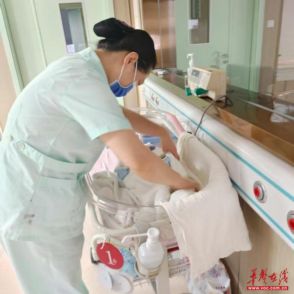 华声在线9月26日讯(通讯员 何敏 戴年春)凌晨三点,株洲市三三一医院新生儿监护室里静得只剩仪器的低鸣,保温箱透出的幽蓝灯光,在冷清的空间里划出一片细碎的光。裴鑫洗净手后,弯下腰细致调整新生宝宝的体位,更换血氧探头的位置后轻轻握着宝宝小手,静静地观察病情——这个动作她重复了八年。