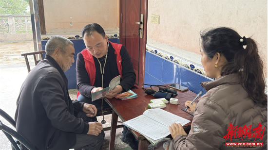 (2025年10月30日下午,株洲市渌口区淦田镇横岭村卫生室一级村医侯芳清和同事在村民张铁光家随访)