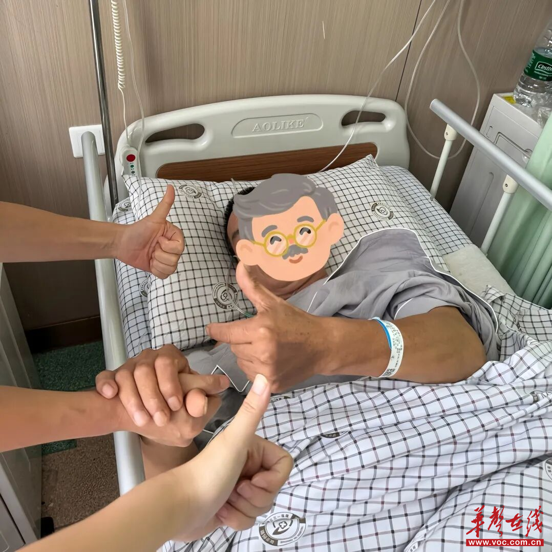 他第一次下床时,双腿颤抖,满脸是汗,却努力站稳,皱纹密布的脸上绽出笑容,那只曾紧紧抓住护栏的手,微微抬起,朝我们竖起了一个大拇指。