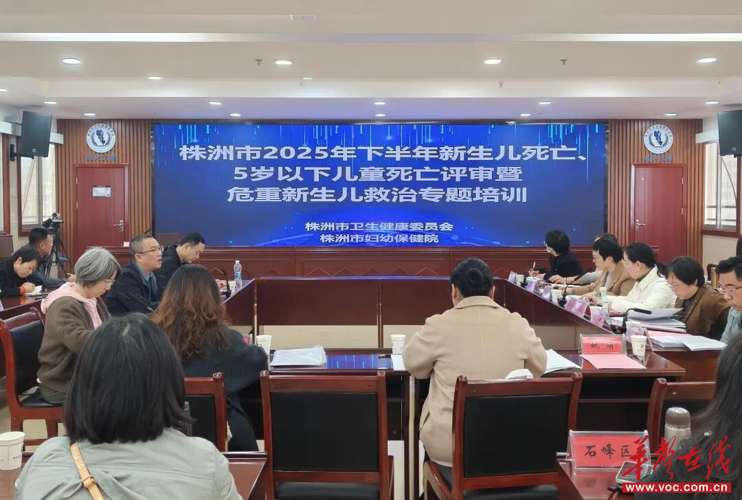 华声在线12月15日讯(通讯员 谭浩洋 姚娟 袁园)为深入剖析株洲市新生儿及5岁以下儿童死因,查找薄弱环节,总结救治经验,全面提升危重新生儿救治能力和儿童健康水平,12月12日下午,由株洲市卫生健康委员会主办、株洲市妇幼保健院承办的2025年下半年新生儿死亡、5岁以下儿童死亡评审暨危重新生儿救治专题培训会议圆满举行。各县市区卫生行政部门和医疗机构100余人参会。株洲市卫生健康委党委委员、副主任邓顺钢,株洲市妇幼保健院党委委员、副院长周树林出席会议。会议由株洲市卫生健康委妇幼健康科科长刘波主持。
