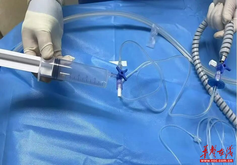 为确保万无一失,株洲市三三一医院团队做了充分准备。多方专家护航:湘雅附二张子曙教授远程会诊,制定个性化方案;术前模拟演练:针对气体栓塞等罕见并发症,反复推演操作流程;精密剂量控制:采用专用CO2压力控制系统,确保CO₂精准输送。