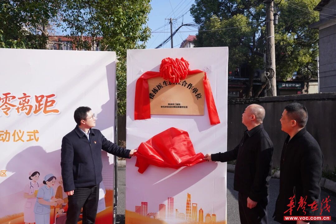 近日,株洲市二医院“楼栋医生”医社合作项目正式落户新建村社区北城欣苑小区。一块“楼栋医生医社合作单位”的牌匾,宣告了这个926人老小区从此有了“专属医靠”。市二医院党委委员、副院长谭英征,石峰区响石岭街道办事处主任郭柱,石峰区卫健局副局长刘杰出席活动并揭牌。