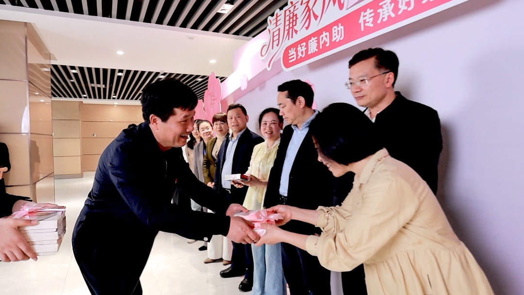 罗友明为干部职工及家属们赠送了家风建设书籍,鼓励大家以书香润家风、以家教守底线。干部职工带领家属一同在“清廉家风 幸福相伴”主题背景前合影,留下清廉印记,让家风建设更具仪式感与感染力。